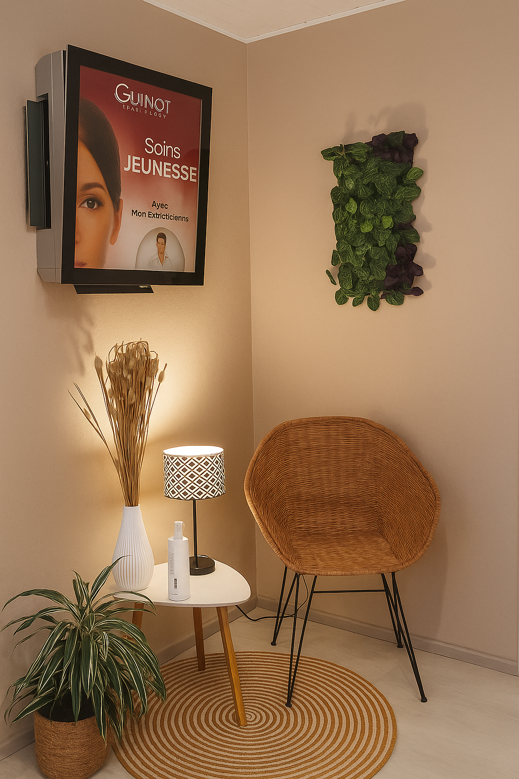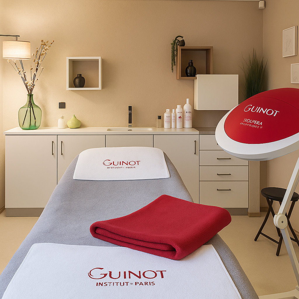Découvrez notre cabine de soins moderne et chaleureuse, pensée pour votre confort absolu. Laissez-vous choyer par nos équipements haut de gamme, tels que le système GUINOT Hydradermie, pour des résultats visibles et une détente profonde.